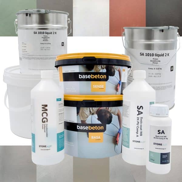For wall applications, Basebeton Primer and Basebeton Coating are sufficient. Complete Basebeton Wall Packages of 5 m² or 10 m² are available at attractive discounts.