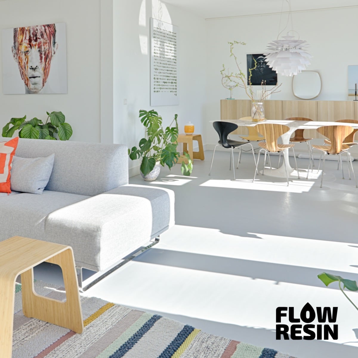 Use the Flow Resin PU Transparent Topcoat for a matte look and extra scratch protection. This topcoat gives the floor a modern, matte look.