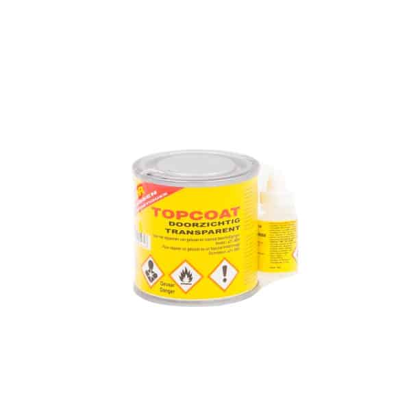 Suitable for repairing damage to the polyester gelcoat, the colored outer layer of a polyester object. The underlying glass laminate may not be seriously damaged. The topcoat is applied, among other things, to the lower and upper water of a polyester yacht.